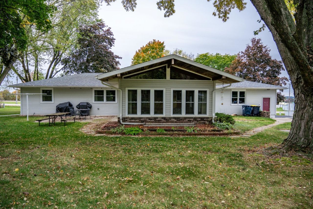 This home is an excellent location with so many upgrades! Located on the corner of Division St and Hess St, across from the fairgrounds and close to the hospital. This home offers three large bedrooms on the main level, large living room with great SUNSET view, remodeled kitchen and sunroom for extra living space. Living room offers a beautiful layout with wood fireplace and large windows for natural light. Primary bathroom has jetted tub. Finished basement offers laundry and additional full bathroom, along with ample storage. All new vinyl windows in 2021, new water heater 2024, upgraded/new front door 2024, and Leaf filter gutter guards (transferrable lifetime warranty) installed 2021. Attached two car garage and 2 additional sheds. Large yard for lots of privacy with in ground firepit. Schedule a showing to see it in person today!