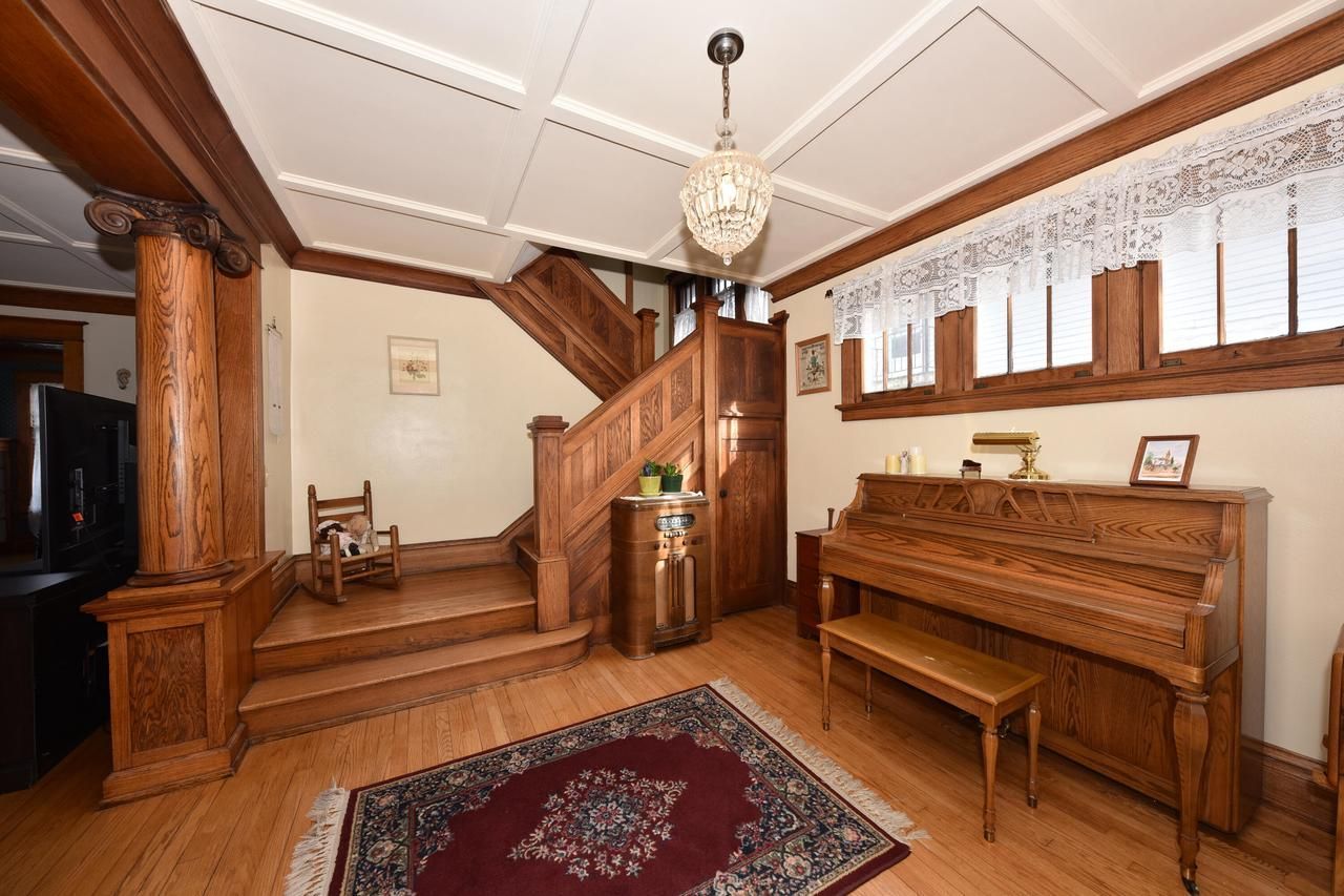 Step into timeless charm w/ this beautifully maintained 4-BR home, built in 1914. An inviting enclosed front porch welcomes you into the foyer featuring carved wooden pillars & gorgeous wood staircase w/dual entrances leading to the upper level. The spacious LR offers a cozy NFP, while the DR showcases beautiful built-in cabinetry including a china hutch & buffet that highlight the home's historic craftsmanship. The updated KIT features ample cabinetry, a convenient pantry cabinet & a bright garden window. Upstairs you'll find 4 comfortable BRs & a remodeled full BA. Outside, enjoy the convenience of a 2.5-car detached garage and a yard ready for entertaining, gardening, or relaxing. Major updates include the roof (2018), central air (2020), both furnaces (2022) & water heater (2024).