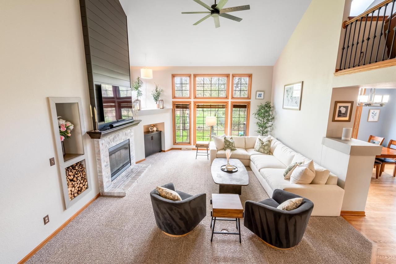 Tucked at the end of a wooded New Berlin cul-de-sac, this 4-bedroom home delivers privacy, polish, and proximity--just 3 miles to Brookfield Square dining and shopping, with Lions Park a short walk away. Step inside to a sun-filled two-story foyer and vaulted great room anchored by a fireplace. The kitchen pairs granite counters with refreshed cabinetry and ample prep space. Retreat to the main-floor primary suite with vaulted ceiling, marble dual vanity, oversized walk-in shower, and jetted tub. A loft, two bedrooms, and updated bath complete the upper level. Downstairs is built for fun: wet bar, theater area, exercise space, guest bedroom, full bath. Backyard wins with multi-tier decks and a gas/wood fireplace. New roof, windows, paint, carpet & EV charger all done. (See Updates in Docs)