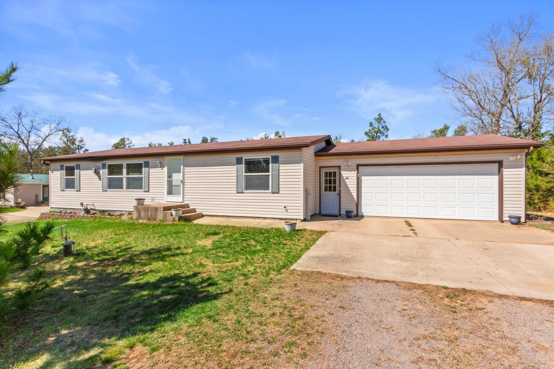 What a find! Lake Arrowhead, Lake Access home in a peaceful neighborhood. The 3 bedrooms, 2 bath double wide manufactured home offers comfortable living with a touch of tranquility. The home offers a concrete patio in the back to enjoy the private yard and its wildlife. Inside the home you will find a functional layout featuring an eat-in Kitchen with plenty of cabinet space, a bright living center with gas stove and three good size bedrooms. The primary bedroom is attached to one of the full bathrooms with walk in shower and walk thru to laundry area. The second full bath serves the other two bedrooms. The home is close to the Lake Arrowhead Chalet, offering many amenities: outdoor swimming pool, playground, pickle ball courts and is only a short drive to world class Sand Valley Golf Resort, Lake Arrowhead Golf Courses and Lake Arrowhead. The property is ideal for first time buyers, or anyone seeking an affordable home in a quiet setting. Don't miss this opportunity to own. Call now!