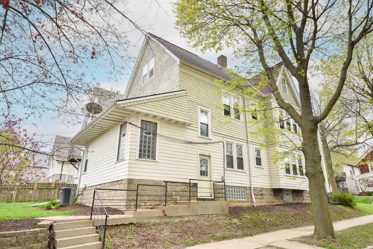 This stately Bay View duplex is a true standout. Finding even one unit with an ensuite is rare--finding a full floor master suite is almost unheard of--and this one delivers both: a lower unit ensuite and upper unit w/ an entire 3rd floor master suite. Lower features an inviting LR with original woodwork, a stunning formal dining room showcasing coffered ceilings, built-in cabinetry, large eat-in KIT with ample cabinetry & prep space, and 3 spacious BRs (one w/ ensuite). Upper offers original woodwork, gleaming HWF, private front balcony, spacious KIT, 2 main-level BRs, and spiral staircase to the 3rd floor master suite. Central air for both units, plus a 2-car garage + slab spot, and backyard with garden beds & blooming trees. A rare Bay View find, blending character and livability.