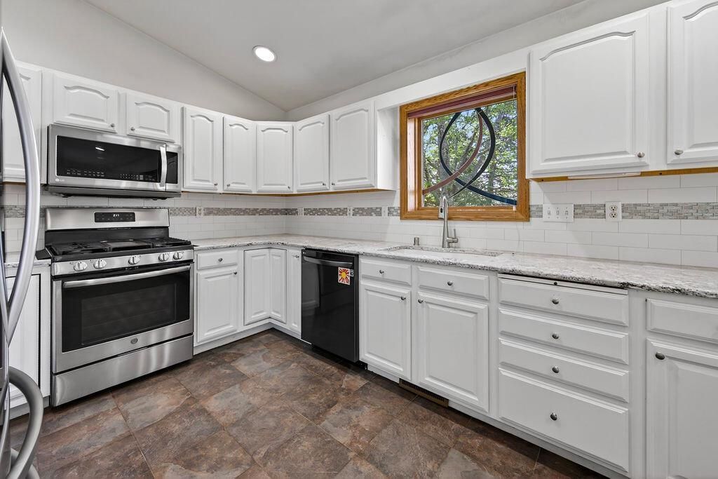 This spacious ranch-style home with an open-concept layout has an abundance of natural light which comes from 4 solar tubes, NEW windows, and a NEW patio door. The kitchen features granite countertops and stainless steel appliances, flowing into a large living room with a cozy gas fireplace. Main level offers three bedrooms, including a primary suite with private bath and walk-in shower. Lower level includes a 4th bedroom, full bath, and family room. For added convenience, laundry has been relocated to the main level (currently in the third bedroom), with the option to easily move it back to the basement if desired. Step outside to enjoy a nicely landscaped backyard featuring a dedicated flower area, a low-maintenance composite deck, and a garden shed.