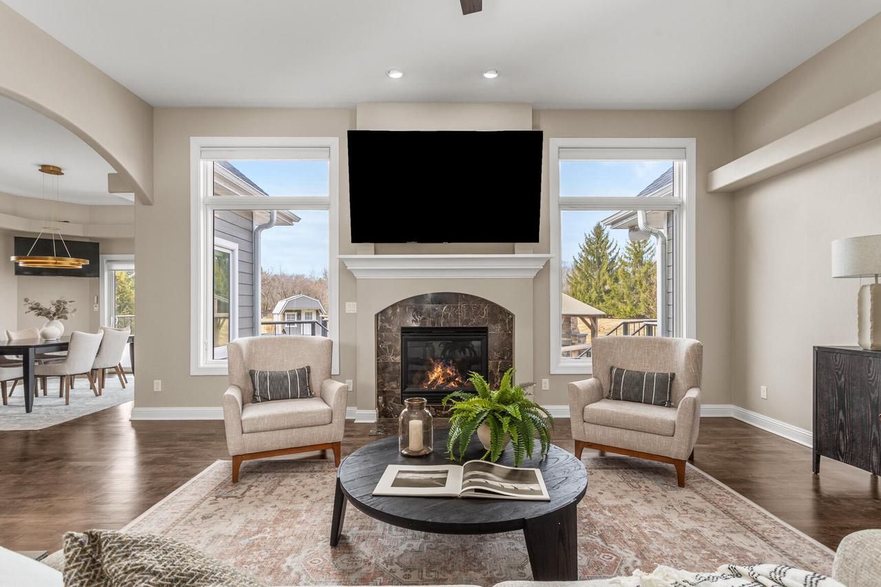 Exceptional 4-bedroom, 3.5-bath home featuring numerous upgrades throughout and designed for both comfortable living and entertaining. The spacious main level includes a stunning kitchen that flows into the living areas and a bright sunroom overlooking the professionally landscaped backyard. Outdoor space is an entertainer's dream with a swim spa, patio, pergola with a stone fireplace. The finished basement offers additional living space, a private movie theater, and a one-of-a-kind upscale wine cellar. This beautifully designed home blends luxury indoor living with an incredible outdoor retreat perfect for relaxing or entertaining year-round!