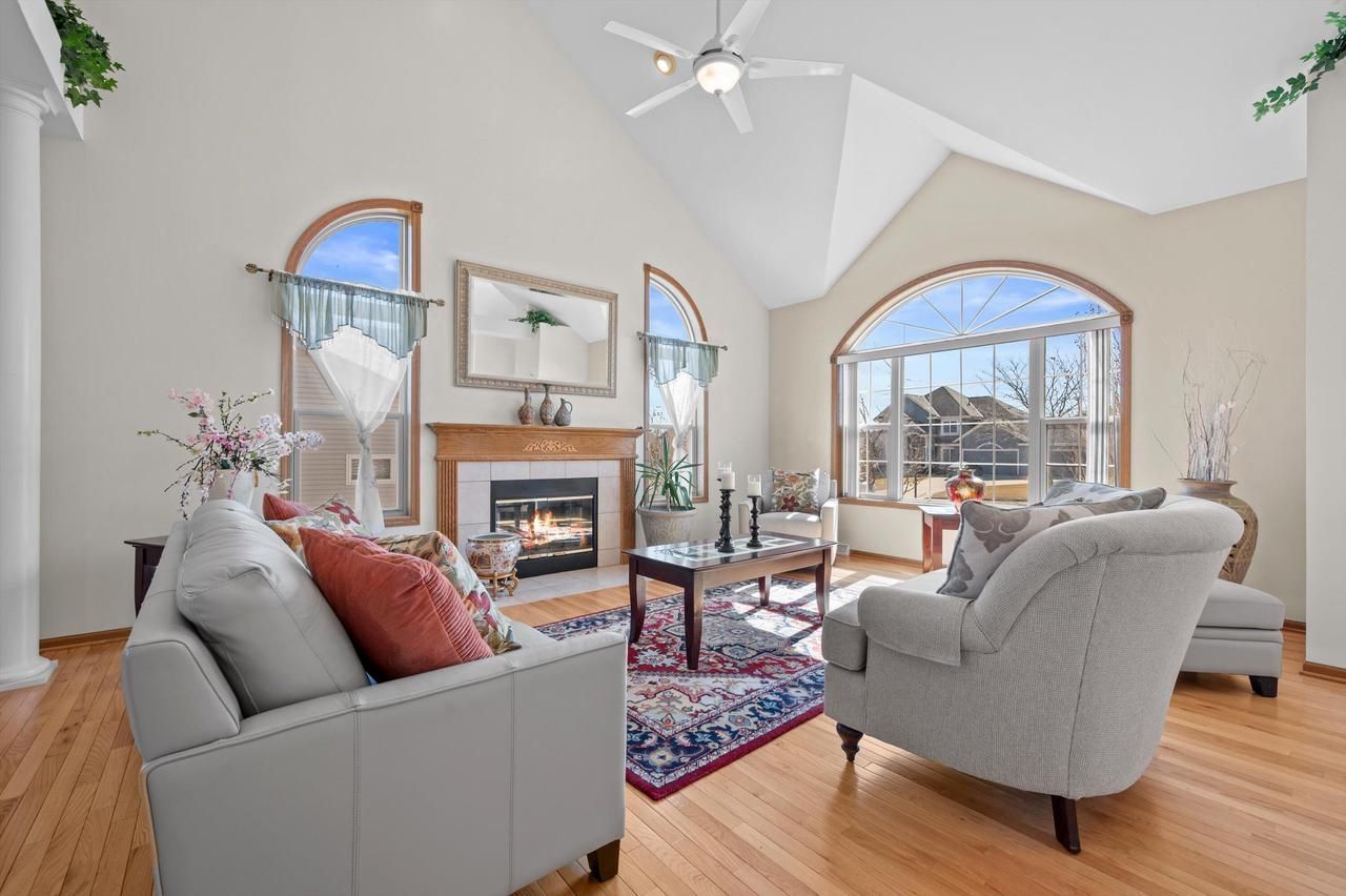 Located in sought after Hunters Reserve in Franklin! Open and airy layout offers excellent space for entertaining & everyday living with a private office ideal for today's work from home lifestyle. Main floor features gorgeous hardwood floors, stunning great room with cathedral ceilings and fireplace filled with natural light, home office & chef's kitchen with stainless appliances open to spacious family room & doors to patio. 2nd floor offers 4 generously sized bedrooms & 2 full baths including a dreamy primary suite complete with large walk in closet & attached bath. Finished basement with rec room and 3rd full bath with shower. Well maintained with many recent updates including roof, furnace, A/C, water heater & wood floors. One year home warranty included.