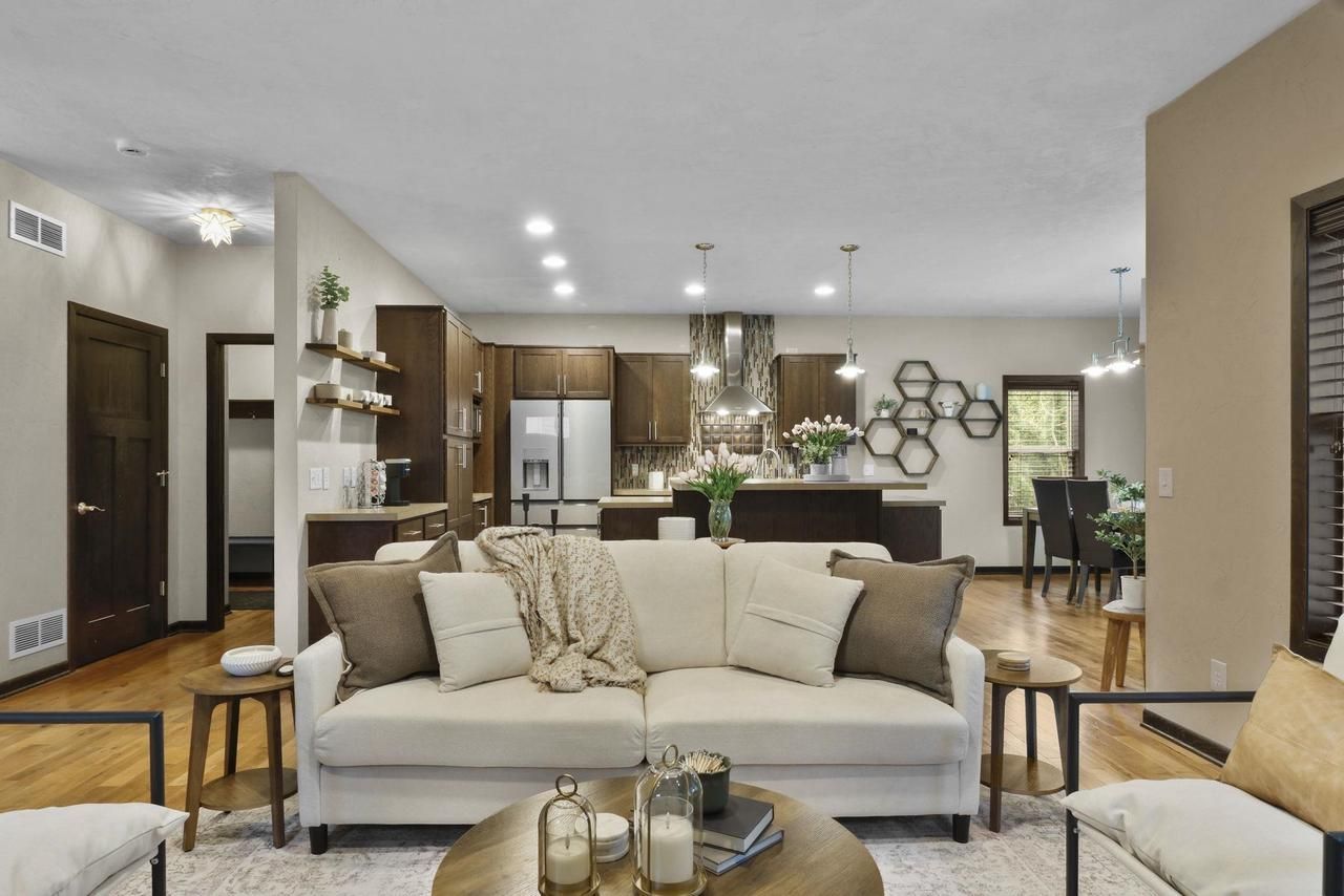 Don't let the 2-car garage fool you, this one fits 3, or use the extra space for a workshop or gear storage. The main level features an open kitchen with island and a large dining room made for hosting. Cozy up to the gas fireplace in the living room, or head downstairs where the lower level truly sets this home apart. An 18x28 exercise/theatre room, separate rec space, full bath, and 8+ ft ceilings that feel nothing like a basement. Step outside to a covered patio perfect for grilling, backed by a private treeline. Primary suite includes a fully tiled glass walk-in steam shower. Ramped/level entrance. Just 11 minutes from Epic, Verona schools.