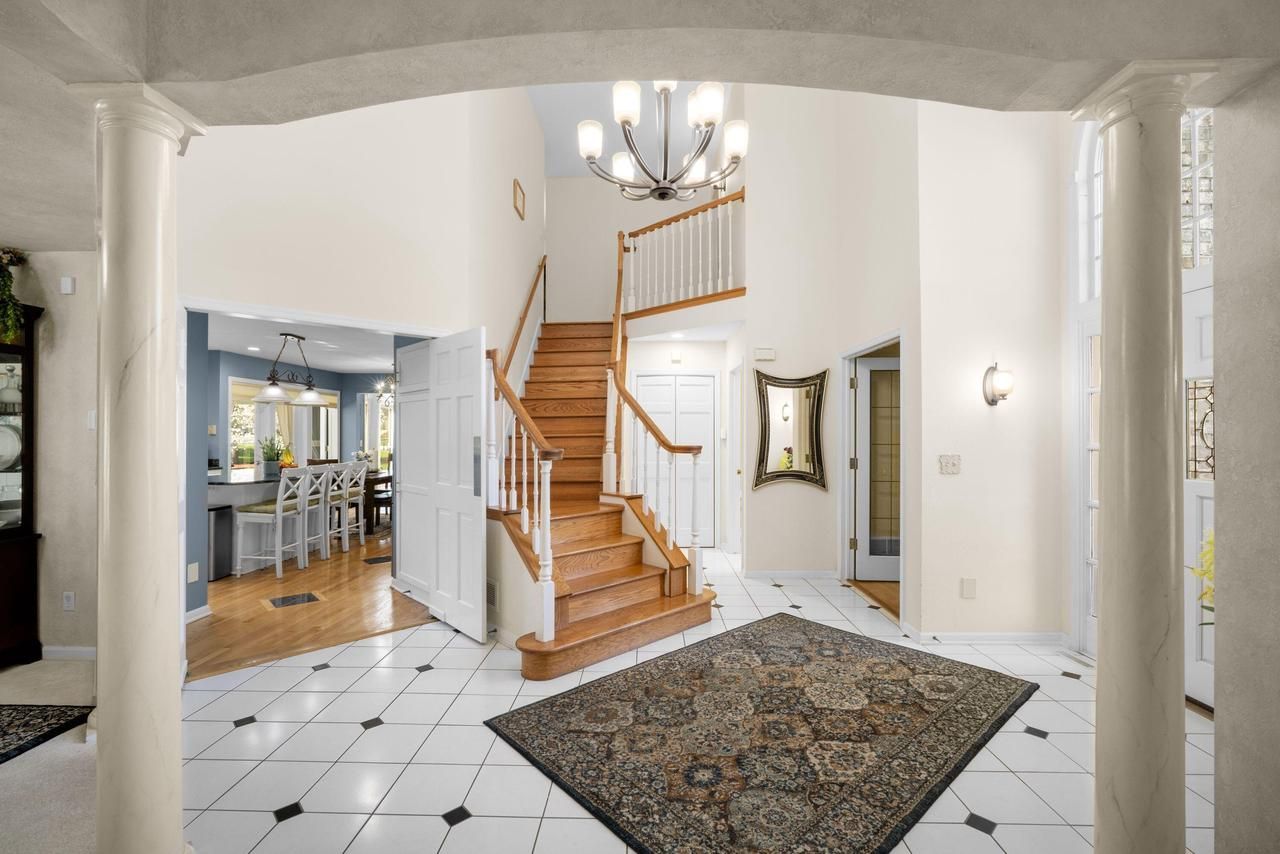 Situated in the desirable Woodfield Park neighborhood, this refined four-bedroom residence combines timeless architecture with essential modern upgrades. Guests are greeted by an impressive two-story entryway featuring contemporary light fixtures and a grand staircase. The main level flows seamlessly from the formal living and dining areas to a bright, granite-clad kitchen equipped with updated stainless steel appliances. Adjacent to the kitchen, a tranquil sunroom opens to a secluded, wooded backyard. Practical features include a dedicated first-floor study and a finished lower level perfect for recreation. Recent high-end improvements ensure peace of mind: a fresh roof and Anderson windows (2023), a high-efficiency HVAC system (2022), and a new garage door (2021).