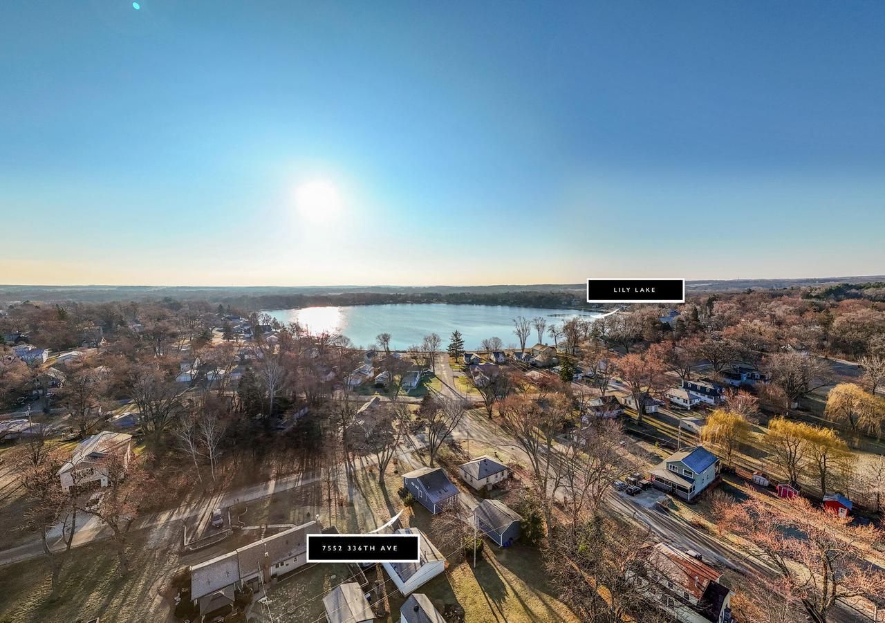 Stunning lake-view property, completely updated in 2019! This 2-bed, 2-bath open-concept home features vaulted ceilings, abundant natural light, and beautiful original hardwood flooring. The thoughtful 2019 renovation modernized the entire house while preserving its unique charm, blending gorgeous quartz countertops w/the original vintage porcelain and cast-iron farmhouse sink. The primary bedroom boasts a full en-suite bath and a walk-in closet w/custom barn door. A dedicated office space offers inspiring views of the lake right from your desk. Outside, take in the water views from the front porch or enjoy a quick walk to the nearby Lily Lake beach, boat launch, pier & park. Complete w/a generous 2.5-car garage for all your storage needs. Perfect home for year-round or vacation living!