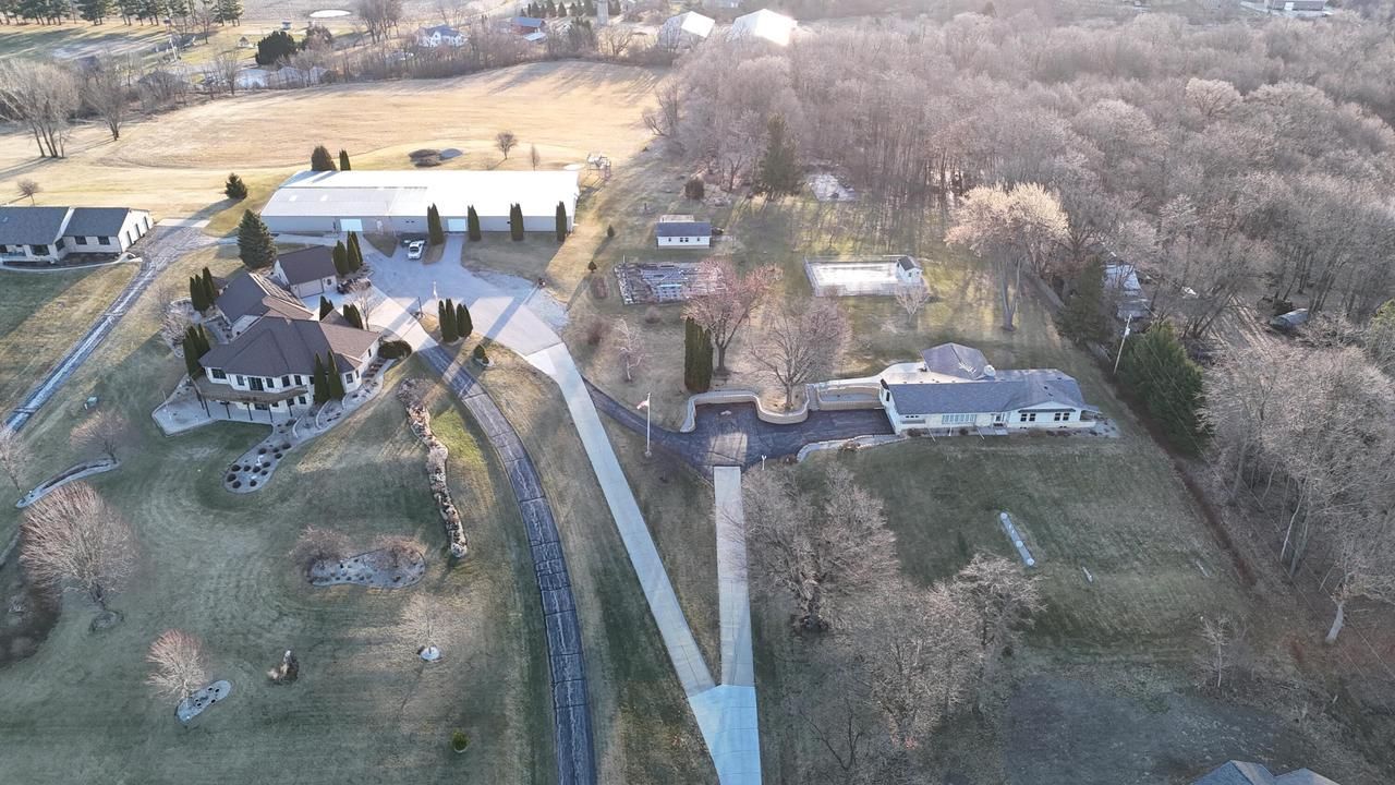 Absolutely amazing property w/breathtaking sunrise & sunset views! Set on 12 scenic acres, exceptional estate features a massive 180x80 pole barn perfect for boat storage or potential income, work shed, screened gazebo, in-ground swimming pool, fruit & vegetable garden, fruit orchard & abundant wildlife. Impeccably maintained 3 bedroom, 2.5 bath ranch w/numerous updates including newer furnace & C/A, newer windows, pool liner & steps, retaining stone, asphalt drive & new mound septic system. Spacious kitchen w/dinette, formal dining rm, & living room w/vaulted beamed ceiling. Fantastic family room showcases a vaulted wood ceiling & walls w/patio doors to huge patio, hot tub, & game room w/NFP. Primary suite w/dual closets & private bath. LL rec room. Priced under appraisal of $800,000!