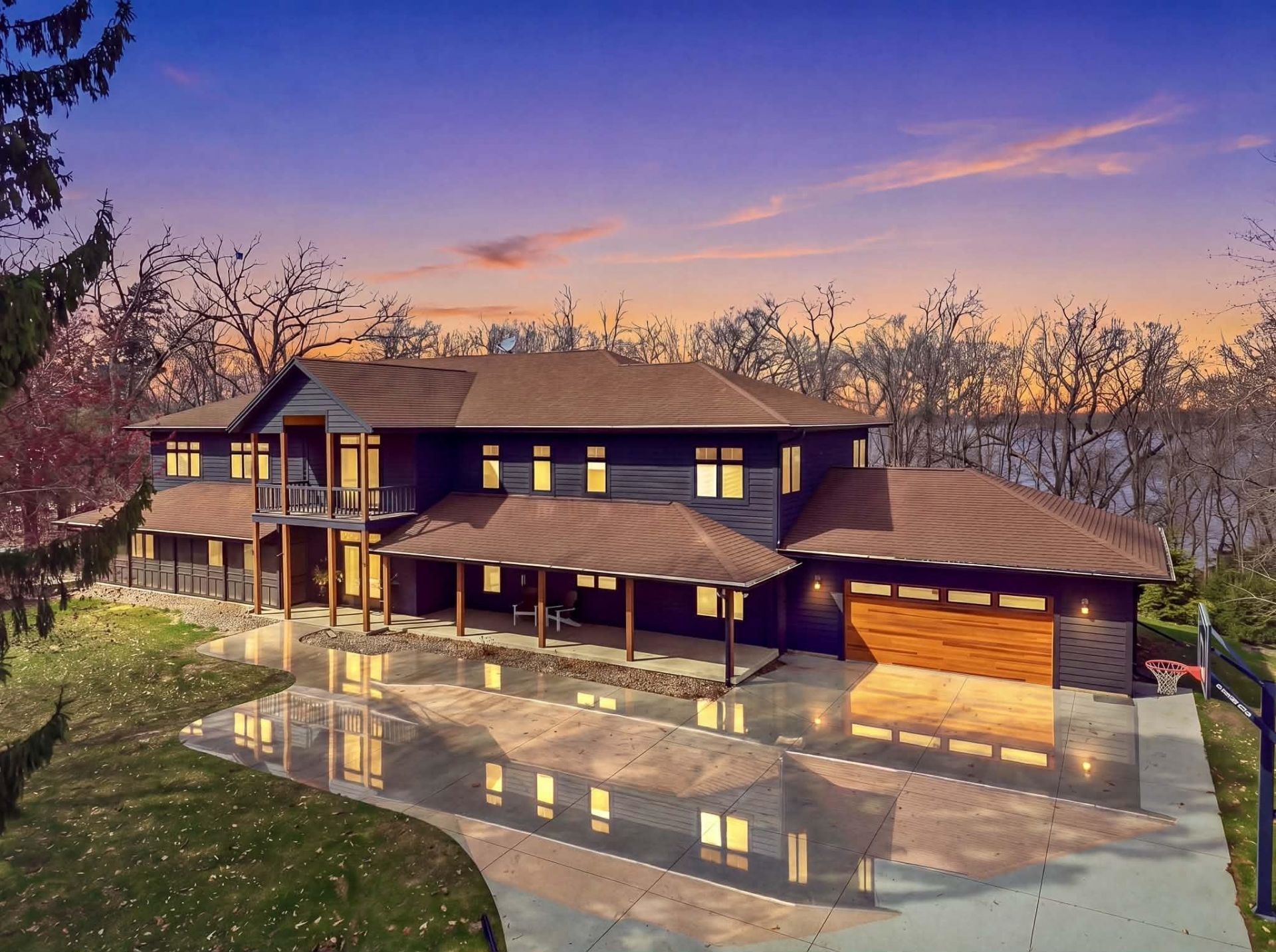 Experience Luxury Lakefront Living on Big Green Lake with 106 ft of frontage in this expansive 4 BDRM, 4.5 bath home w/ over 7,000 sq ft of thoughtfully designed space. Large windows throughout fill the home with natural light and showcase beautiful lake views. The main living area features vaulted ceilings and a stunning floor-to-ceiling stone fireplace. The updated kitchen offers sleek finishes, high-end appliances, and a functional layout ideal for entertaining. Enjoy multiple living and recreation areas including a spacious LL with bar and game space, plus a dedicated fitness room, and an upper spacious in home theater. The primary suite provides a private retreat with direct access to outdoor living. Step outside to enjoy the shoreline, private pier, and beautifully landscaped setting- perfect, for relaxing or hosting. Enjoy multiple outdoor screened in spaces for stunning lake views. A rare opportunity to own a standout property on one of Wisconsin's most sought-after lakes.