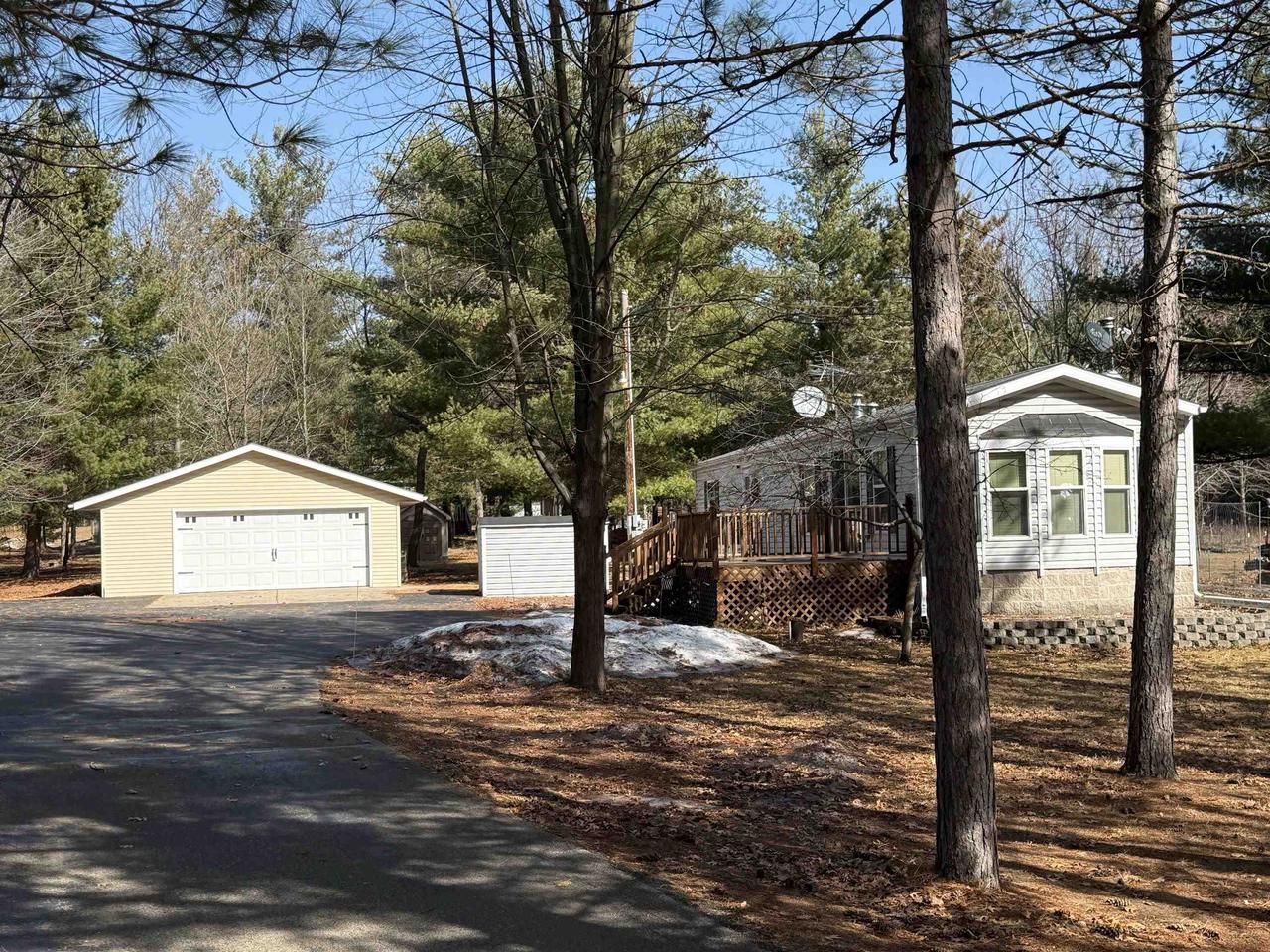 Your search is over! If you are looking for a year 'round get-away that is surrounded by a number of lakes, restaurants, golf courses... this is it! Fully furnished and ready for you! This 2 bedroom mobile home is in excellent condition and has an extra large 2.5 car garage for your boat and all the toys! Tucked back on a wooded lot just north of Shawano Lake, Washington Lake and south of Legend Lake, here you can enjoy the peace and quiet on the large deck and relax. OR... if you are looking for an affordable home and want to be out in the country, this one is one you won't want to pass up. Open concept living space, with a free-standing wood burning stove in living room and patio doors to the deck. Call today to see this property!